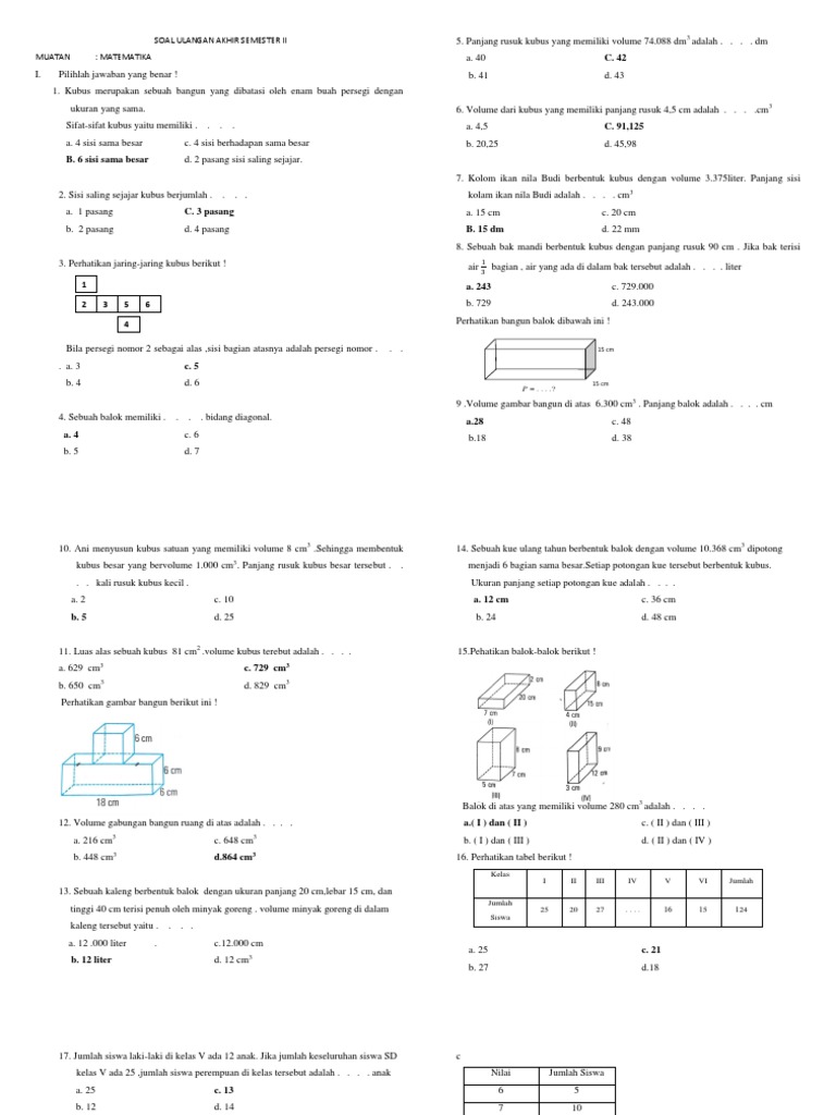 Soal Matematika SMP semester Genap Latihan soal - MATEMATIKA from 1.bp.blogspot.com Bangun tersebut merupakan gabungan dua buah bangun, yaitu balok dan setengah tabung. Volume bangun ruang adalah banyaknya isi ruang yang digunakan oleh suatu bangun. Pembahasan ayo mencoba matematika kelas 6 halaman 157 bab 3 bangun ruang materi tentang cara menghitung volume. Berikut ini adalah soal latihan bangun ruang kelas 6 sd, berikut jawaban dan pembahasannya untuk dapat dipelajari agar lebih mudah dipahami 1. V=s x s x s =8 x 8 x 8 =512 cm³. Volume gabungan bangun di samping adalah … Bahas soal palingpintar com free soal uan ebtanas. Kumpulan rumus bangun ruang beserta contoh soal dan pembahasannya.